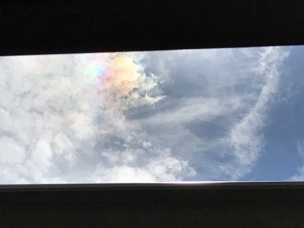 彩雲とは、太陽の近くを通りかかった雲に、緑や赤など多色の模様がまだらに見える現象。