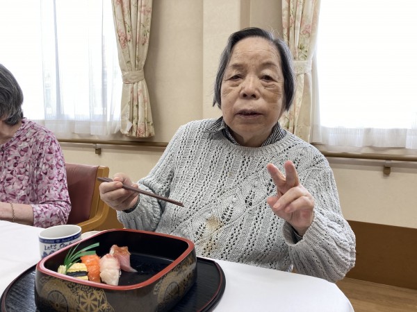 お寿司が大好きなN様、朝からスタッフが今日のお昼はお寿司です。とお伝えすると