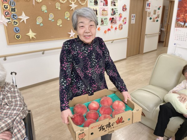 先日、ご入居者様の面会の際に立派な桃をいただきました!