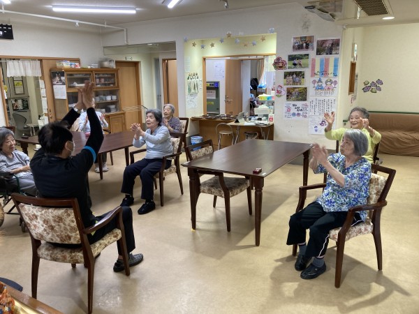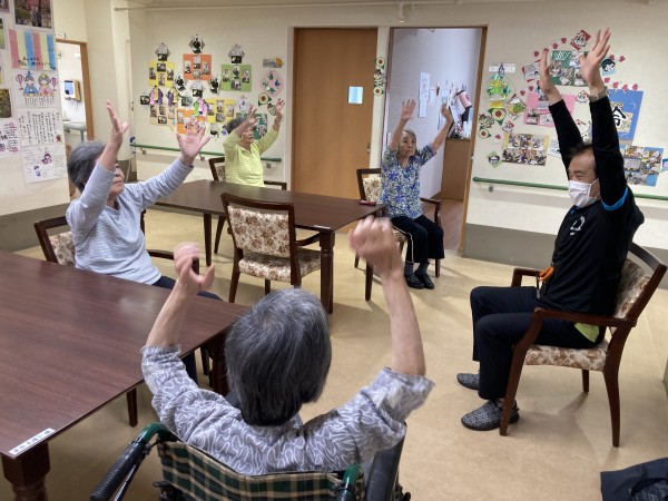 グループホームみんなの家 宮原では、訪問運動教室が行われました。
