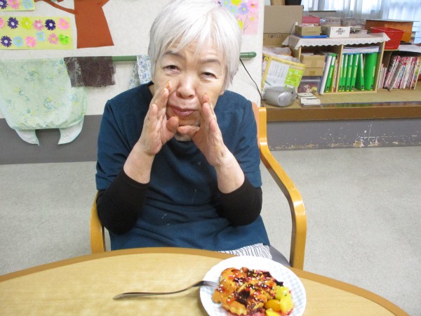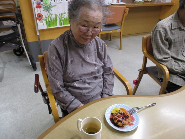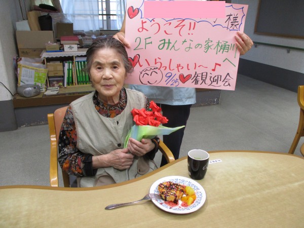 新しい入居者様です。職員手作りケーキで、プチ歓迎会を行いました。