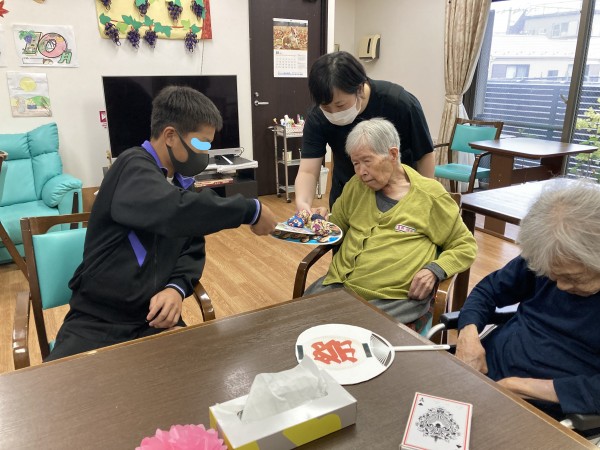 他にも毎日の掃除・消毒、シーツ交換などもお手伝いしてくれました。他にも利用者様との交流がいーーつぱい。たくさん過ぎて今回だけでは伝えきれませんので、続きは、また次回に。パート2.パート3と続く予定です。お楽しみ♬