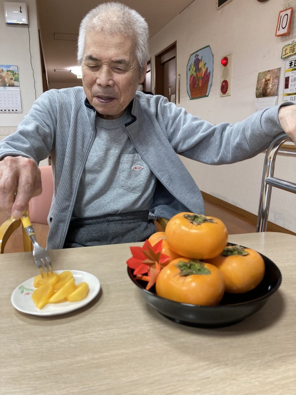「うわぁ!甘そう」「昔干し柿作ったのよ!畑の周りにシブ植えてたから。途中で食べたくなっちゃうのよね…」