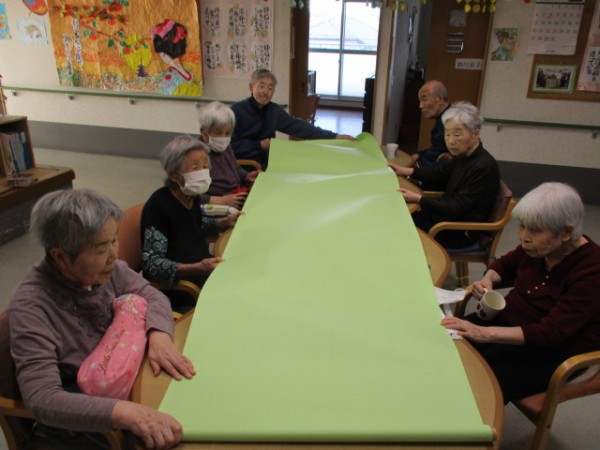 お祭りの事前準備として、看板と大きな大きなランチョンマットをみんなで作りました。