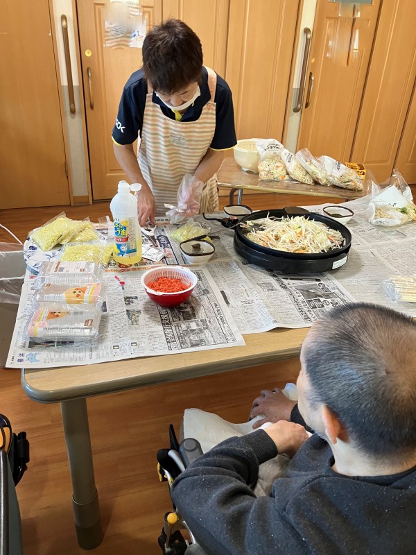 職員が作るのを見ていたご利用者は「美味しそうだね‼」「食べたいよ」など