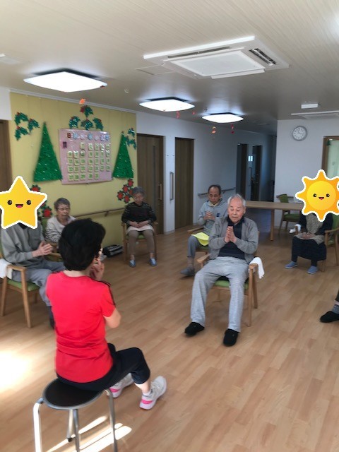 最初は疲れるからいいよーと言ってた方もみんなが楽しそうにやっていると真似してしっかりと運動されていました♪