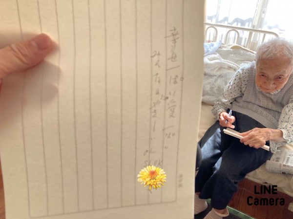 つい先日も居室にお呼びに行くとお手紙を書かれていました。