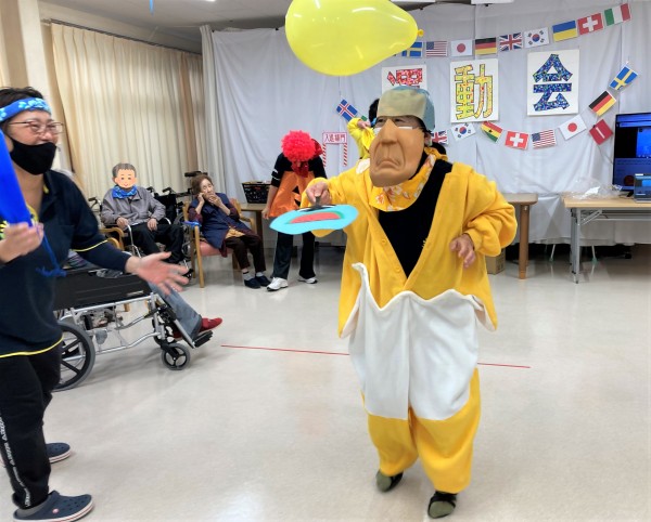 ただのリレーではつまらないので、引いた番号の仮装をして走って下さい☆