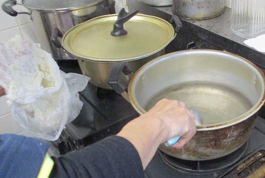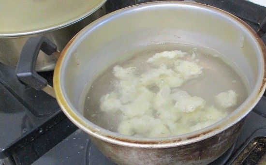 こねたお団子を一口大にして熱湯に投入!