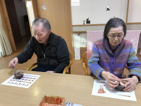 今日は鏡開きを行い利用者様に