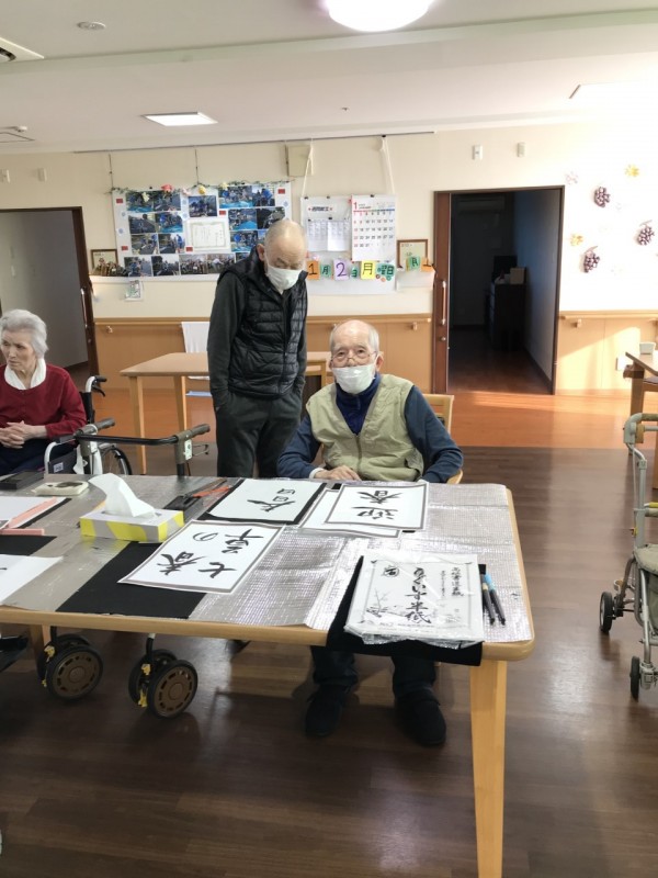 年が明けまして入居者の皆様に書き初めをしていただきました!(^^)!