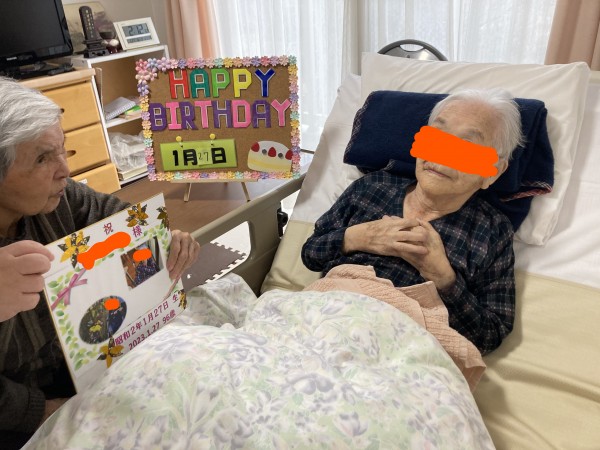 利用者様代表してお一人プレゼントを渡しに訪室し「おめでとう」と声をかけてくださいました。