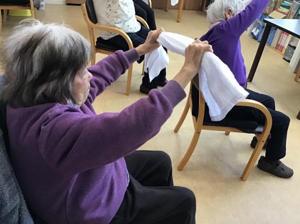 元気いっぱいの高橋先生の掛け声に合わせてタオルを持ってしっかり身体を動かしていきます。