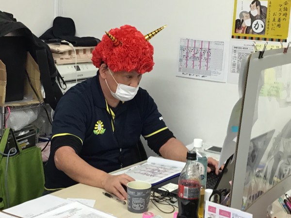 鬼さんは事務所でお仕事をしながらスタンバイしてくれています。