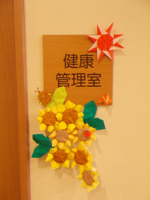 その事務所に季節にあった手作りの飾り付けを看護師さんたちがしてくれています。