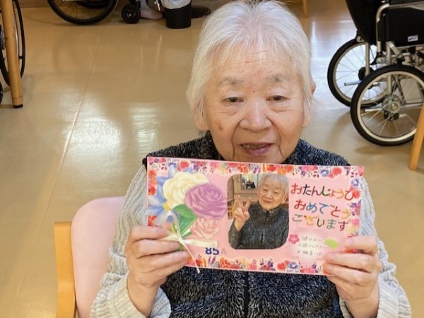 お誕生日カードをお渡しすると、「あら素敵ね」とカードをじーっと眺めていました。