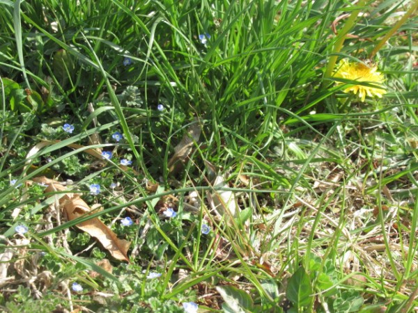 タンポポ、オオイヌノフグリ、チョウセンアヤメ、