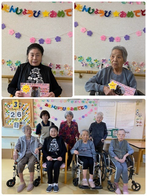 先日、3階フロアにて3月入居者様のお誕生日会を行いました。