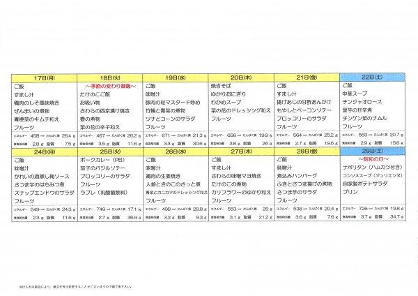 4月献立表
