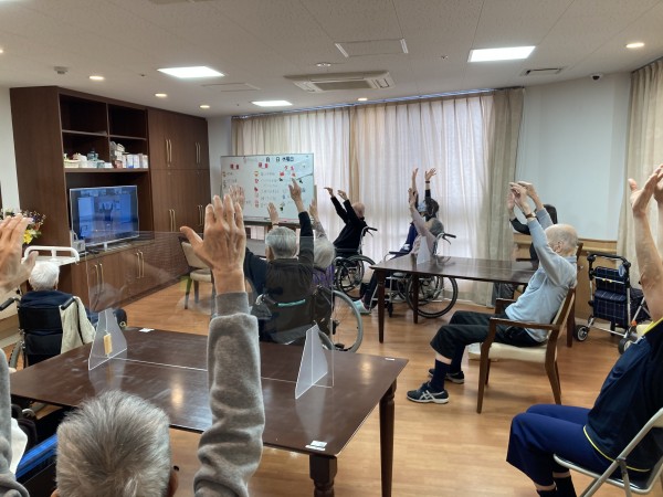 今日は、ALSOK介護の健康増進プログラムのひとつ「ノーアエクササイズ」がリモートで行われました。