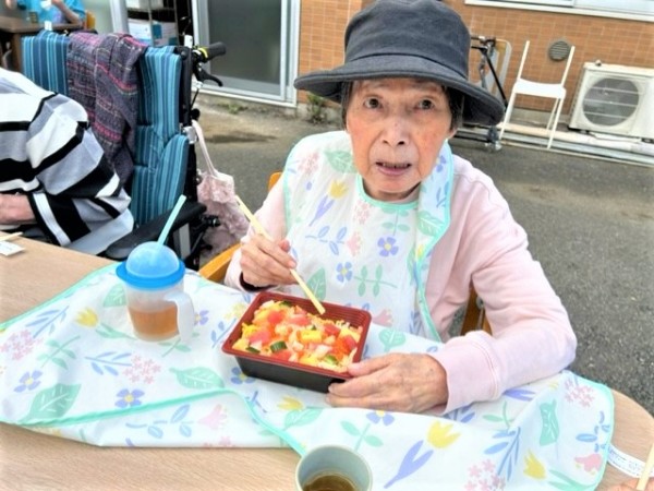 今年も『お花見弁当出前』を企画しましたが、日程が遅れ遅れになってしまい、ホームから見える唯一の桜の花も散ってしまいました。