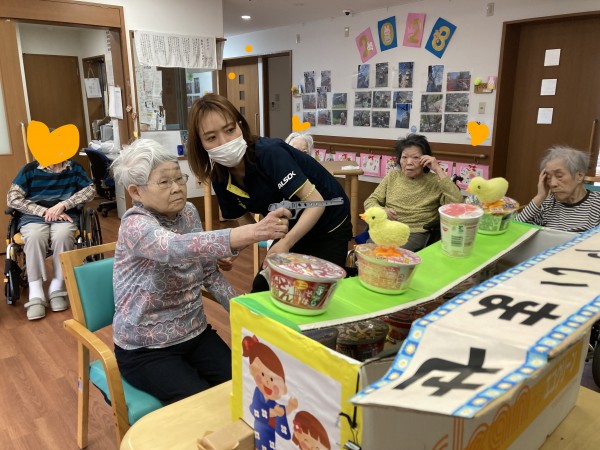 今回はホーム全体で盛り上がったK職員実演の空手とカップラーメンの射的を紹介します!