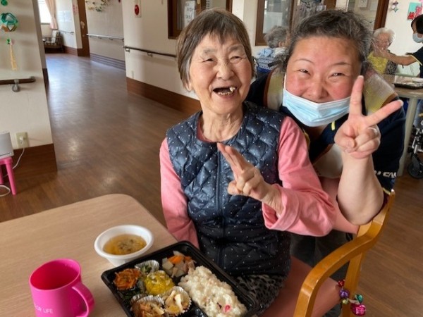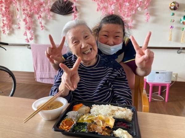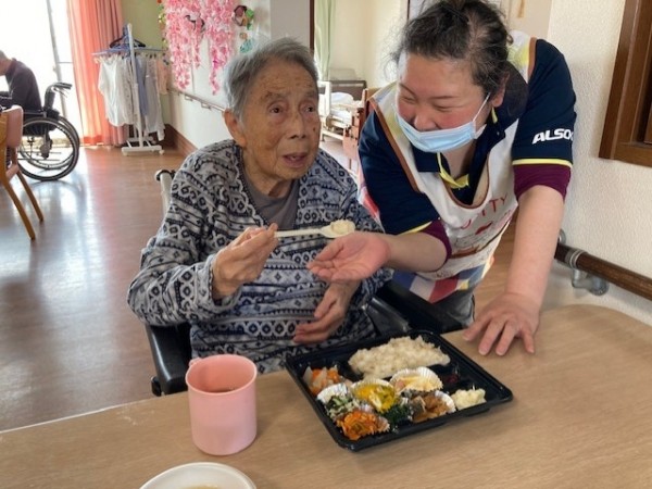 桜の木の下でお花見をしながらとはいきませんでしたが、ホーム内でお花見弁当を召し上がりました!