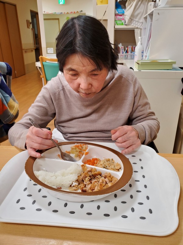 美味しそうに食べてます(利用者様によってはワンプレートのが食べやすいことも)
