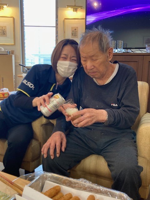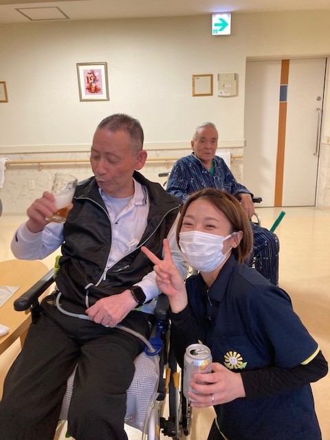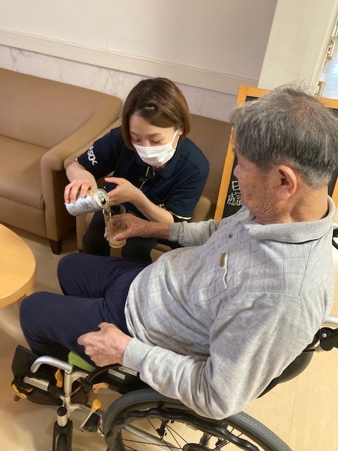 久々のビール(ノンアルコール)に感涙するご入居者様も…Σ(・ω・ノ)ノ!