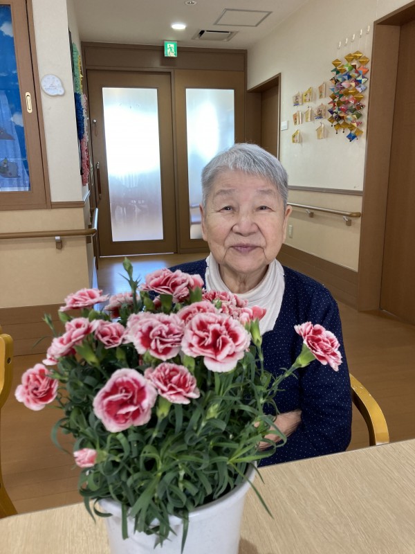 ご家族様からカーネーションが届きましたので、写真を撮らせていただきました!!