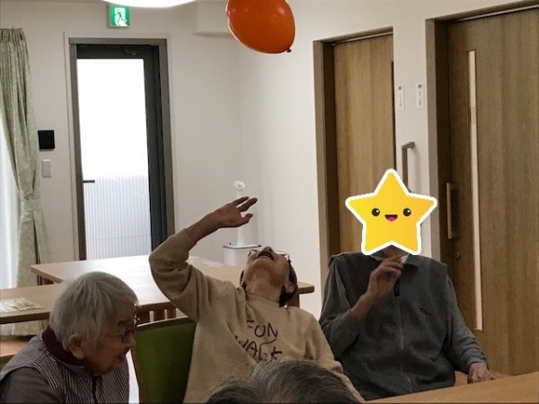 ご利用者様の素がおもしろ可笑しく出てしまう風船バレーで楽しんでます。