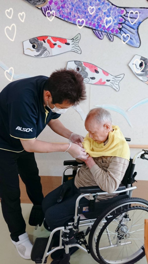 いつもは不穏になりがちな利用者様がスタッフと並んで座って...