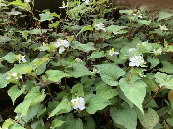 成長する八重咲のドクダミ草が
