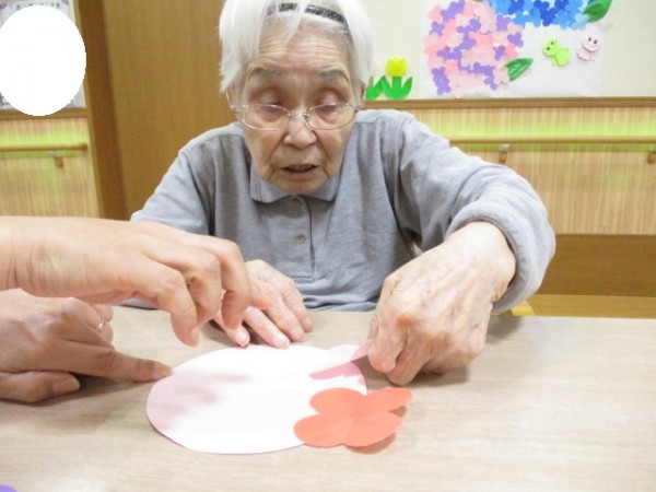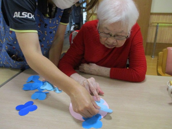ホームでは、皆さんと一緒に紫陽花の貼り絵を楽しみました(^^♪