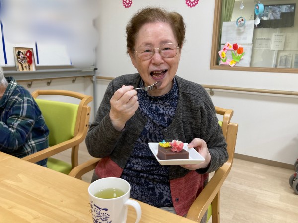 職員手作りの水ようかんとケーキでお祝いしました♪