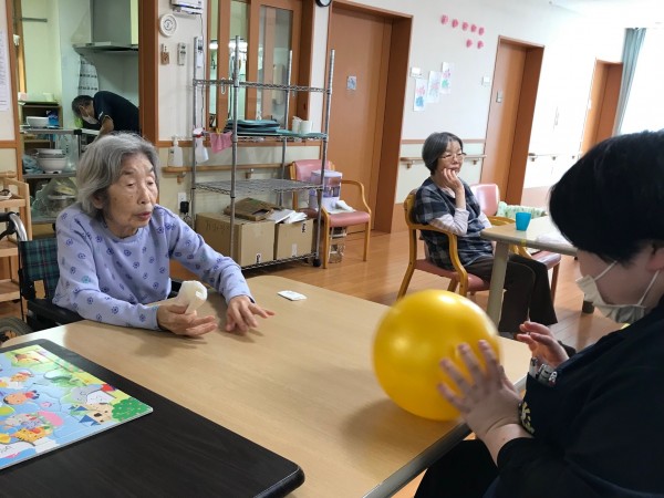 2Fのフロアに上がると、ご利用者様と職員さんがボールで遊んでいました。