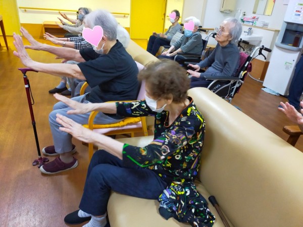 ご利用者様と、今日も体操です!