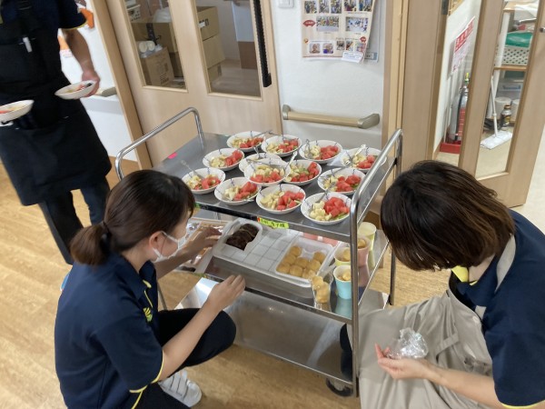 6月は父の日、今回は父の日レクとして、おやつバイキングをしました。