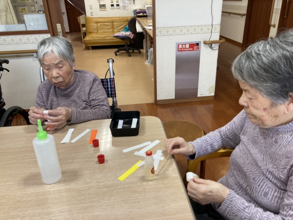 2F利用者様による七夕のお飾りの準備をしている様子です。
