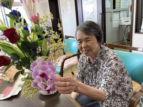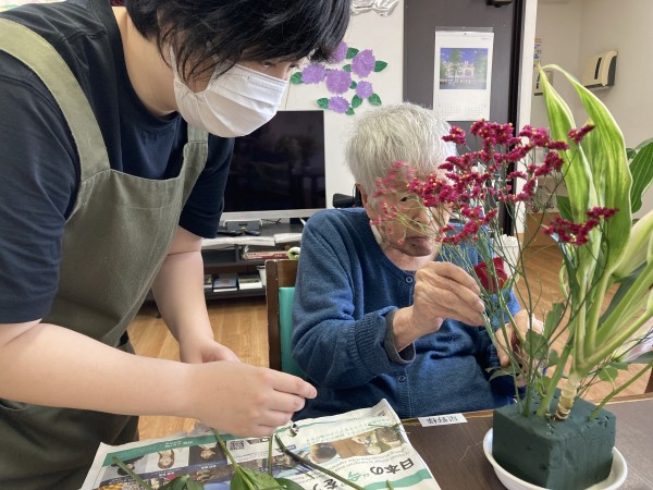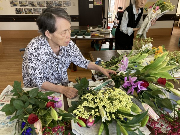 今回3階ブログはHケアマネが作成いたしましたので、よろしくお願いいたします。アレンジメントを生けている時の様子を見ながらのコメントに注目!スターート!