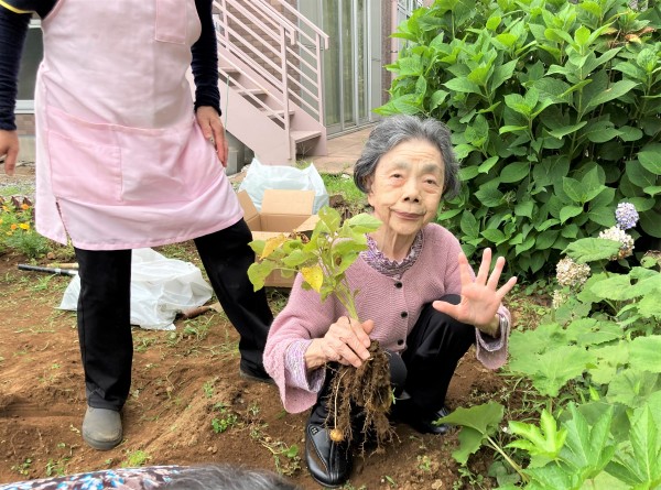 何も植えずに休ませていた畝にサツマイモを植え付けして行きます(*^▽^*)