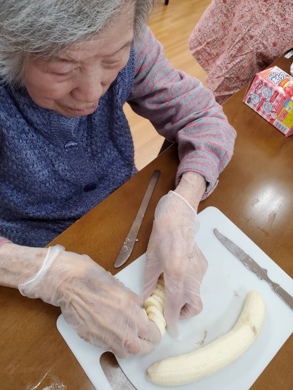 バナナを切って、チョコレートでデコレーションをしたりして…( *´艸`)