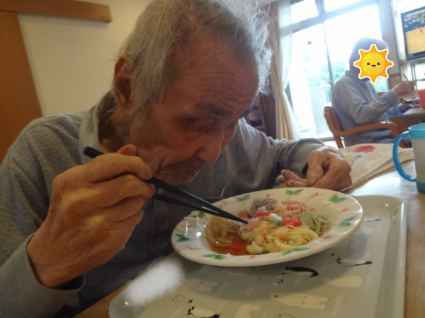 今回は「七夕そうめん」を召し上がっておられるご様子をご覧ください(^^)/