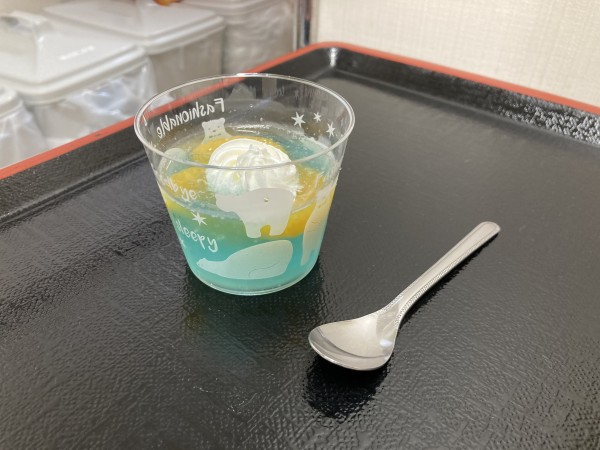 天の川を見立てて、ブルーハワイシロップを使用。ゼラチンとかき混ぜて冷やすだけの、簡単ゼリーです。みかんとクリームでトッピング。