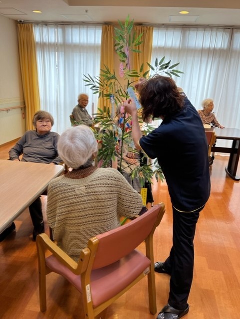 リビングに飾ってからも、七夕飾りを話題に楽しくお話していました(*^-^*)