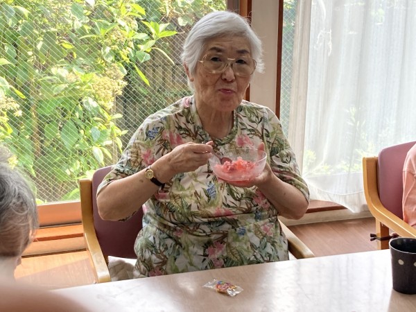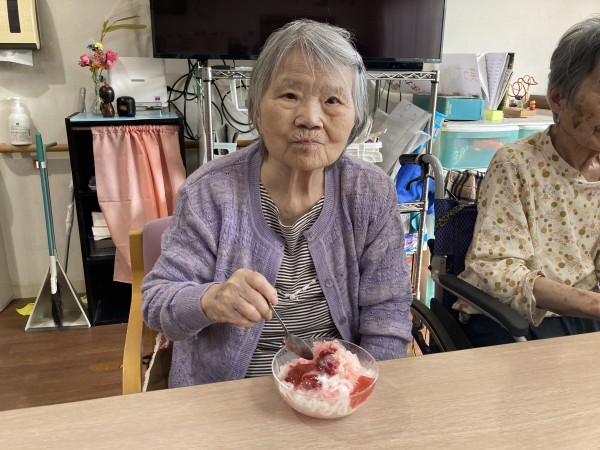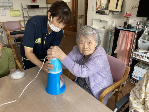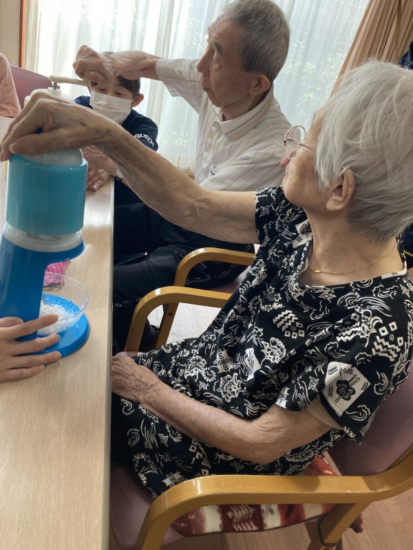 今日は暑さに負けず、そして水分補給を兼ねて「かき氷作り」を楽しみました(^^)/