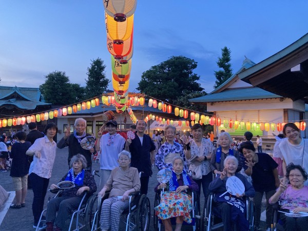 今は暑い日が続き、散歩には行けていませんが、夕方からの盆踊りは久しぶりのお散歩にもなりました。みんなで出掛けられる機会は貴重です。同じ楽しい時間を共有できることは大切ですね。