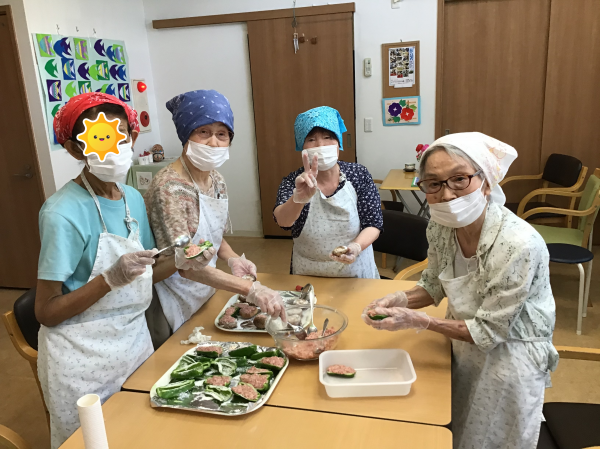 みんなで協力して作ったピーマンと椎茸の肉詰めは格別ですね(*'▽')
