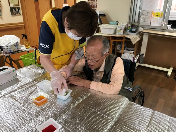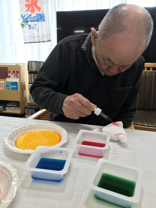 やり方もスポイトで垂らしたり、隅っこに色を付けたり、