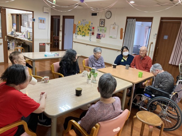 おやつを食べ、ゲームや歌を歌い和んでくると、話も盛り上がりこんなにいい笑顔が見ることができました(*^_^*)
